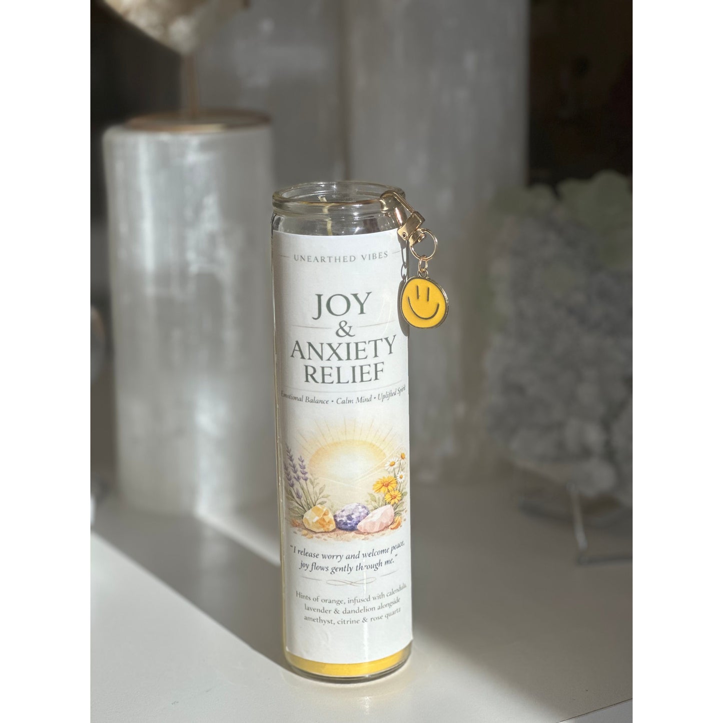 Joy & Anxiety Relief Candle | Citrine, Amethyst, Rose Quartz | Herbal Healing Candle for Calm, Happiness & Emotional Balance