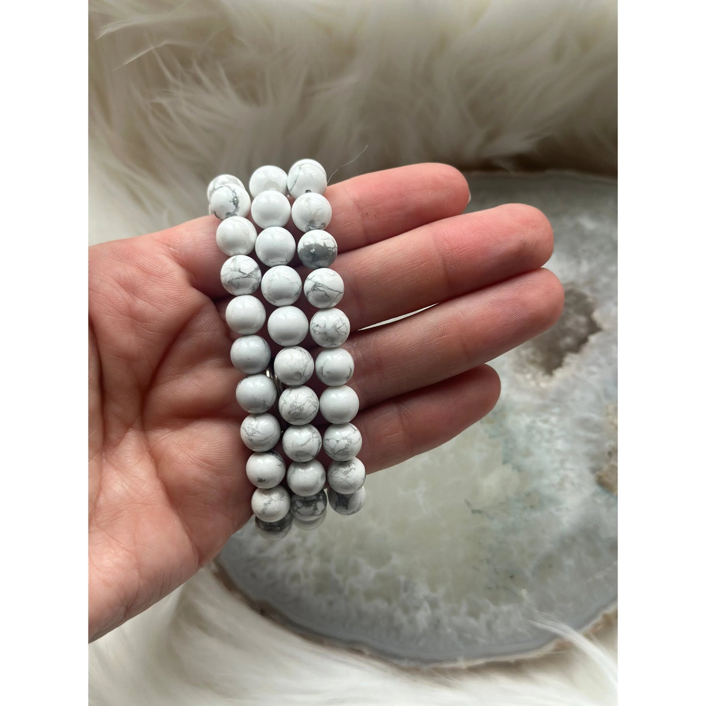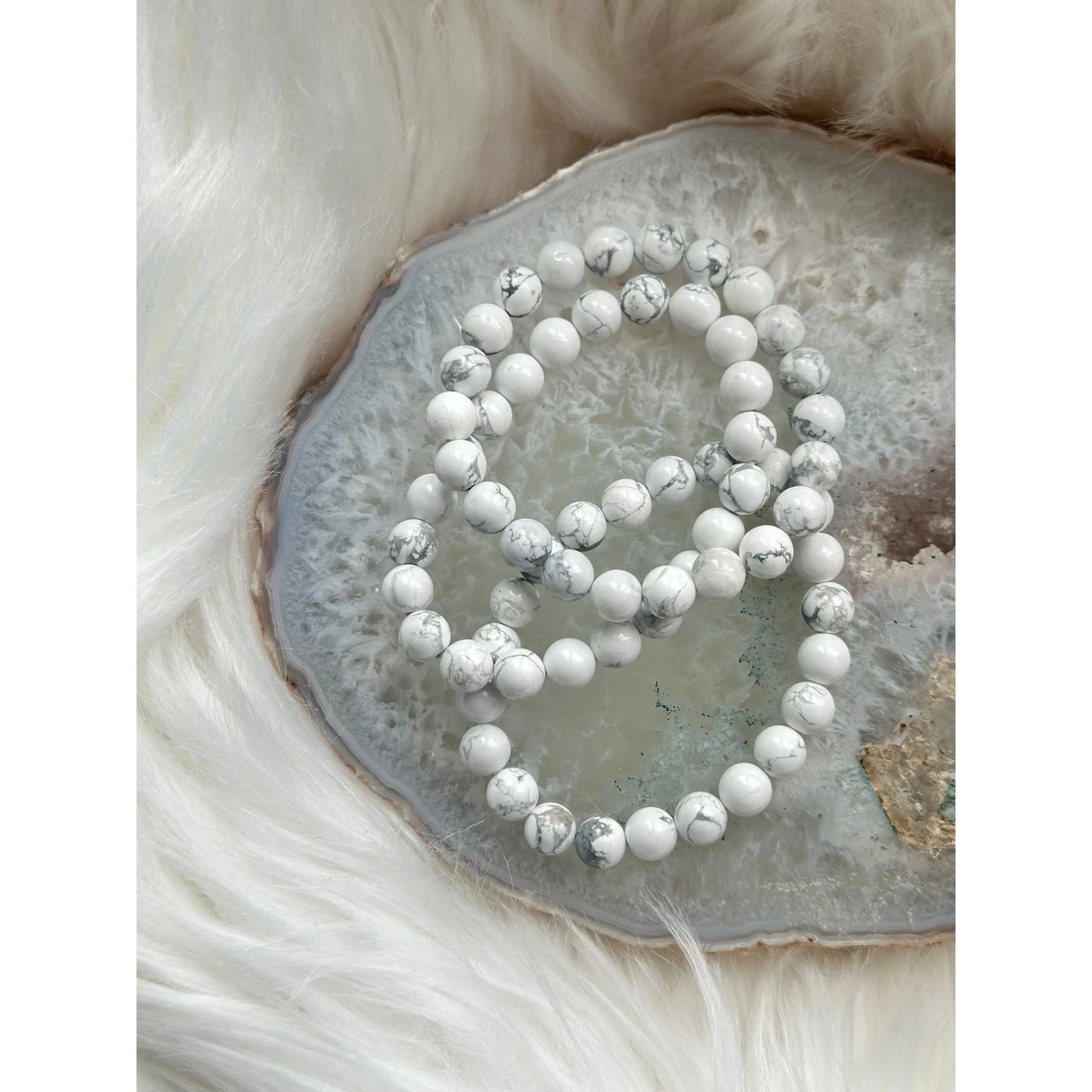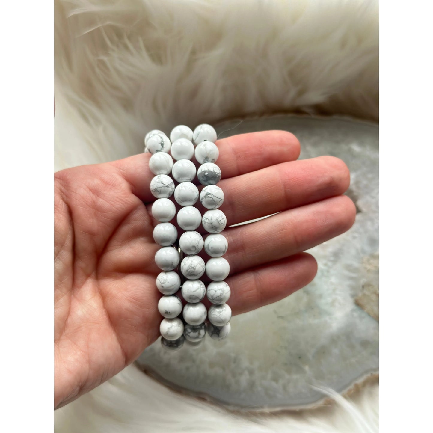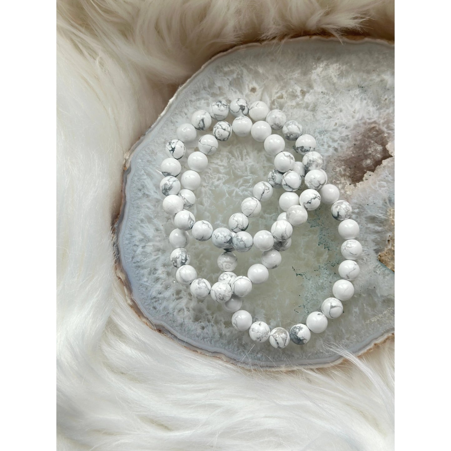 Polished Howlite Bracelet – Calming, Stress Relief & Emotional Balance