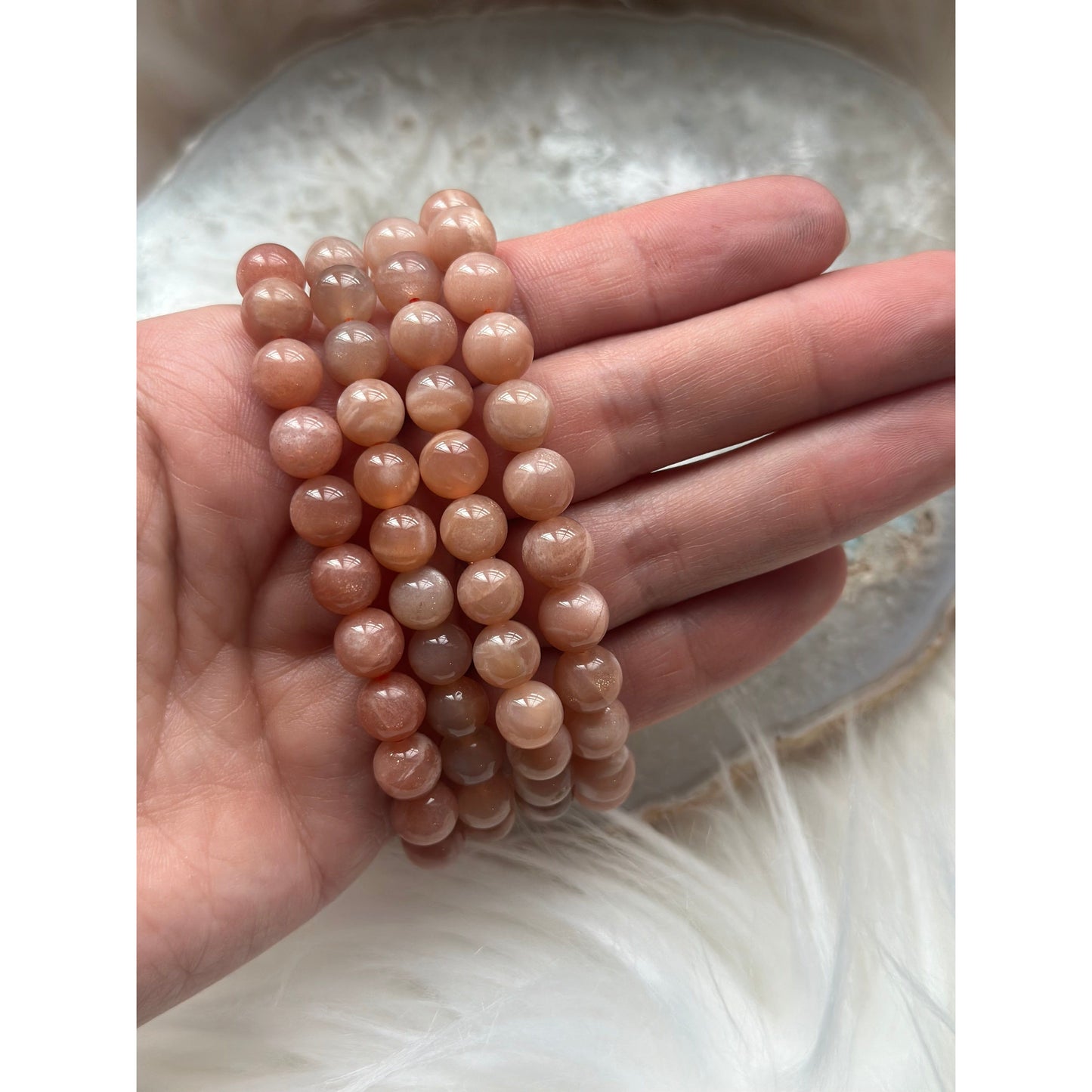 Polished Peach Moonstone Bracelet – Feminine Energy, Intuition & Emotional Healing