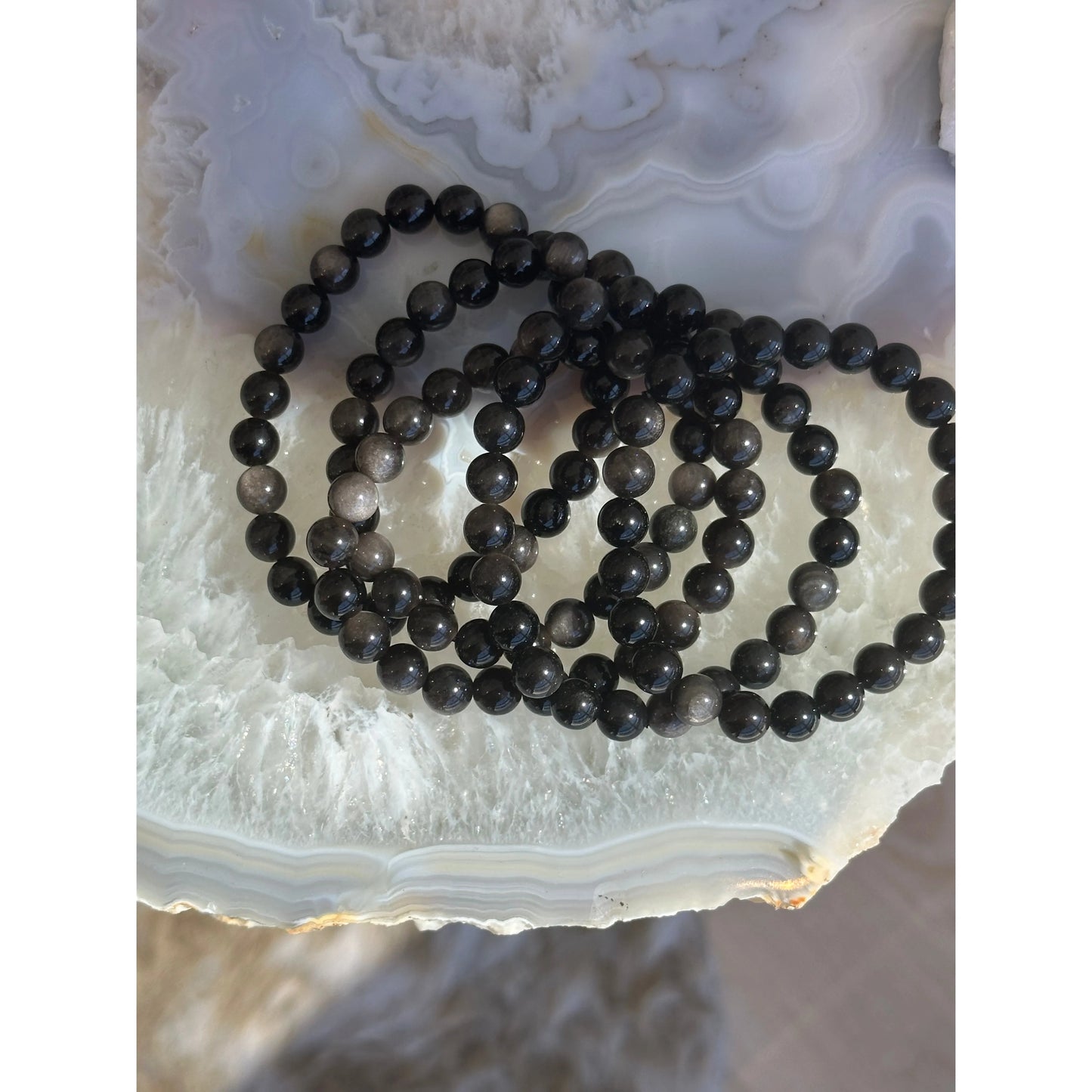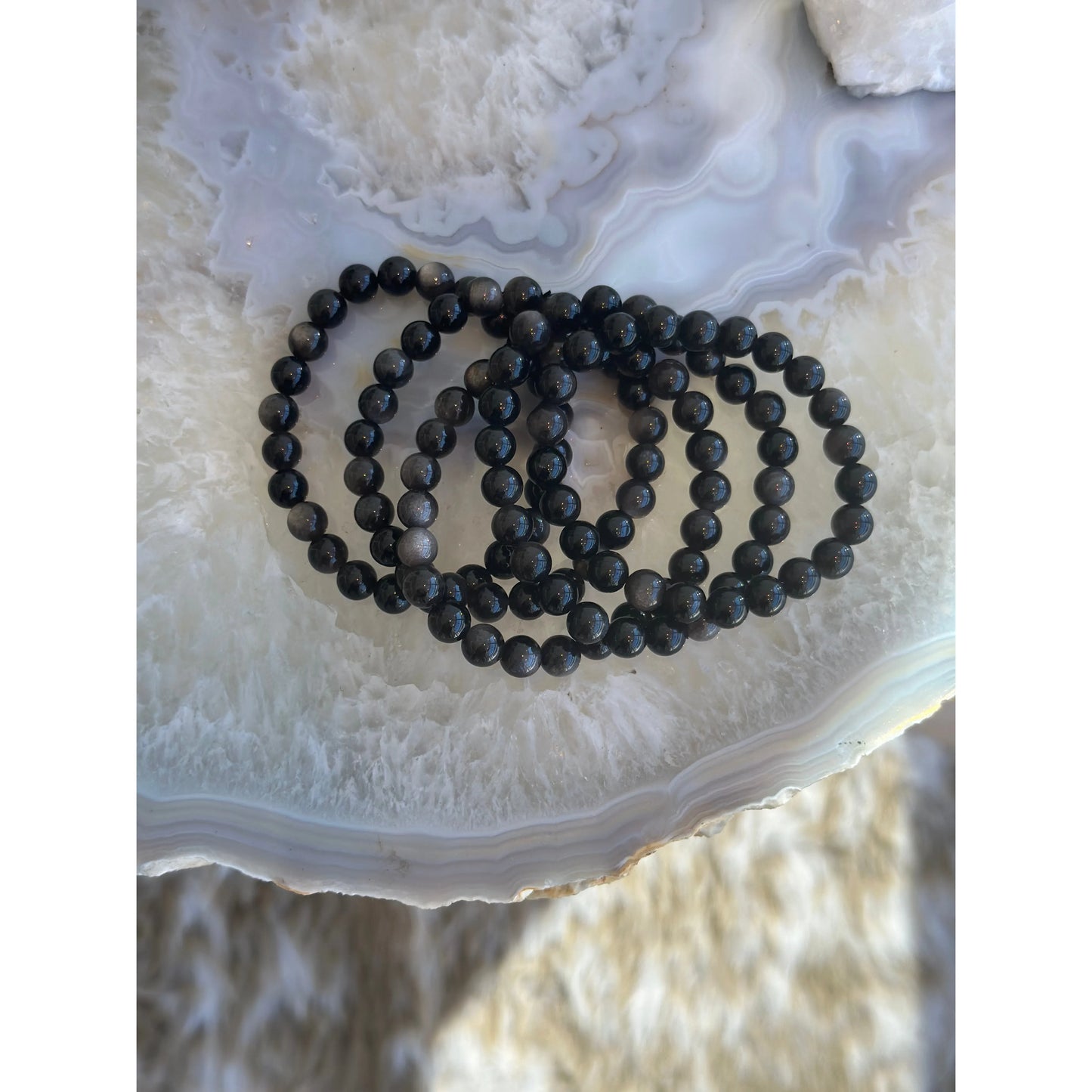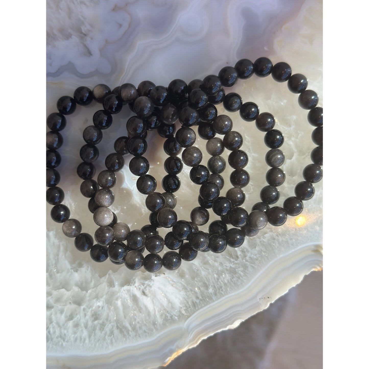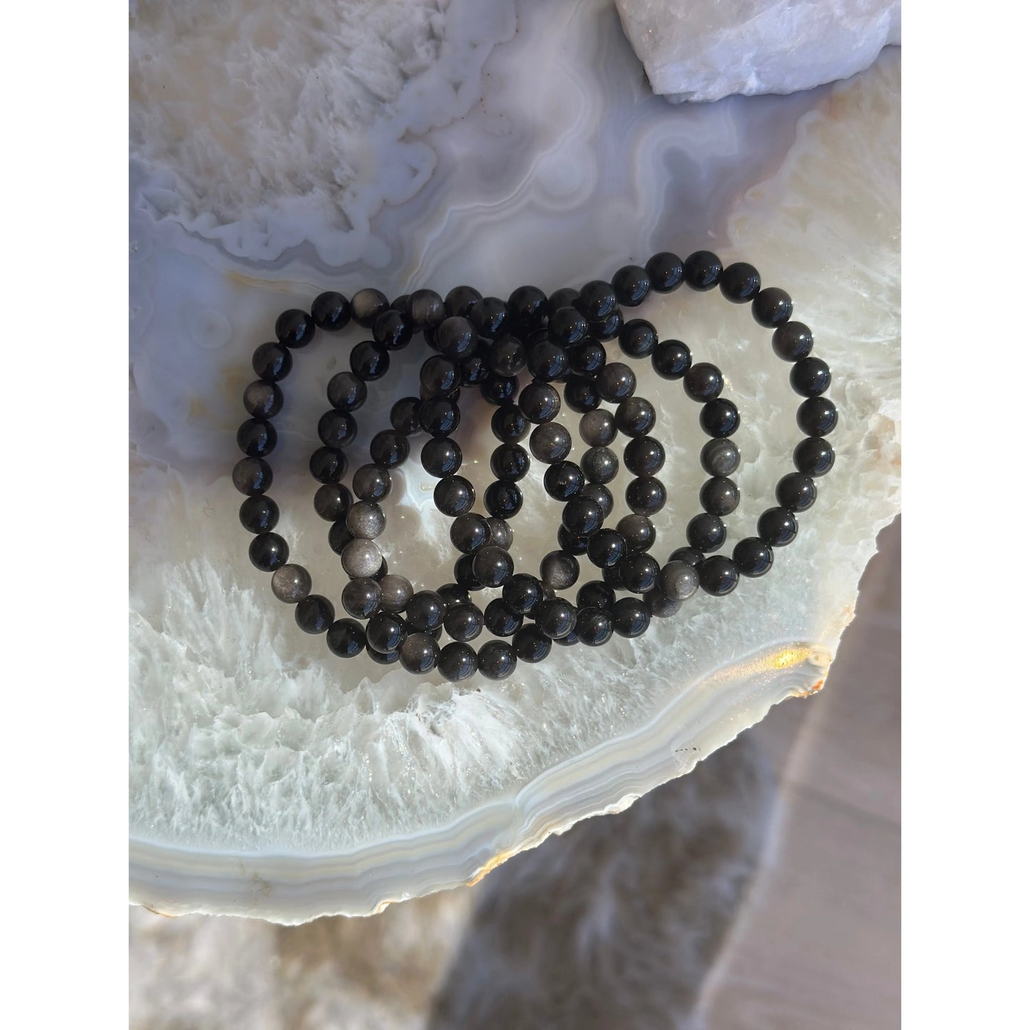 Polished Silver Obsidian Bracelet – Protection, Clarity & Inner Strength