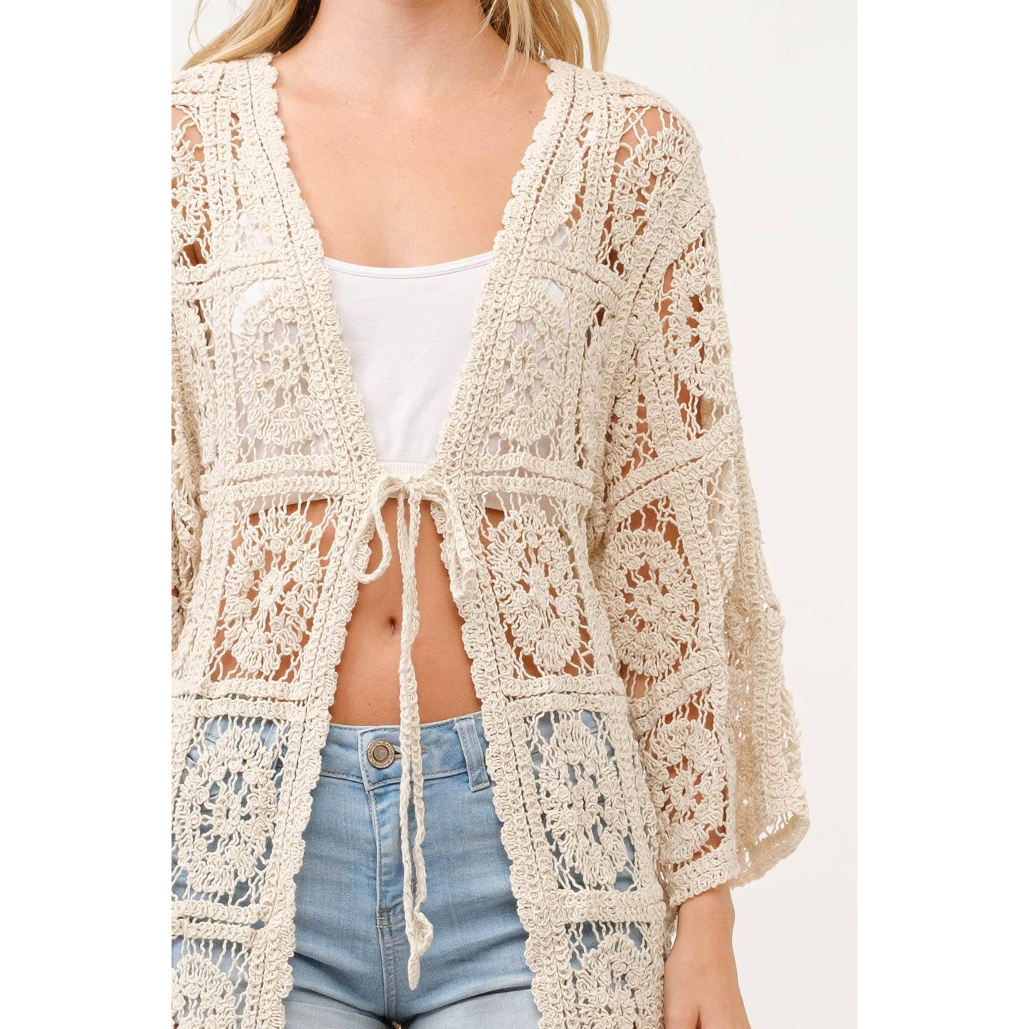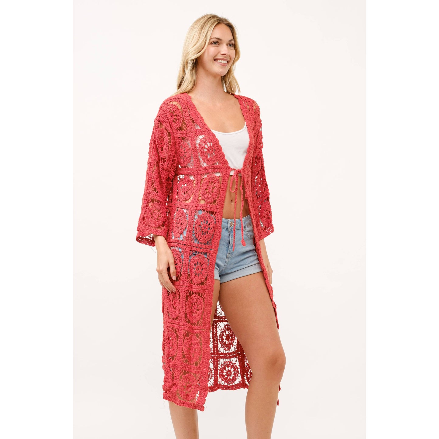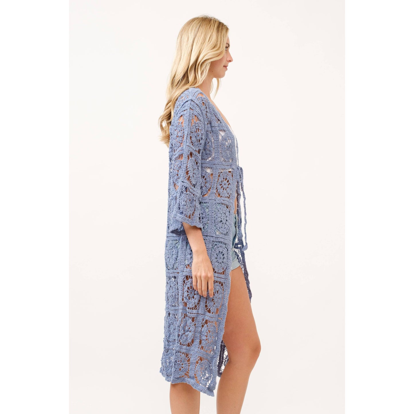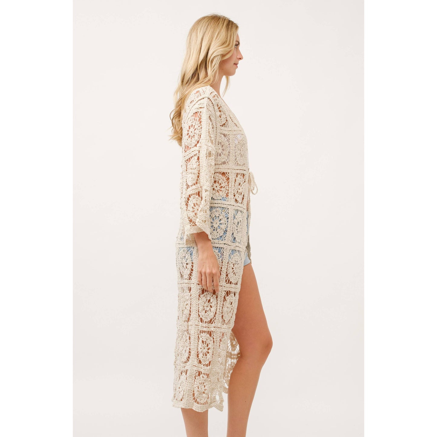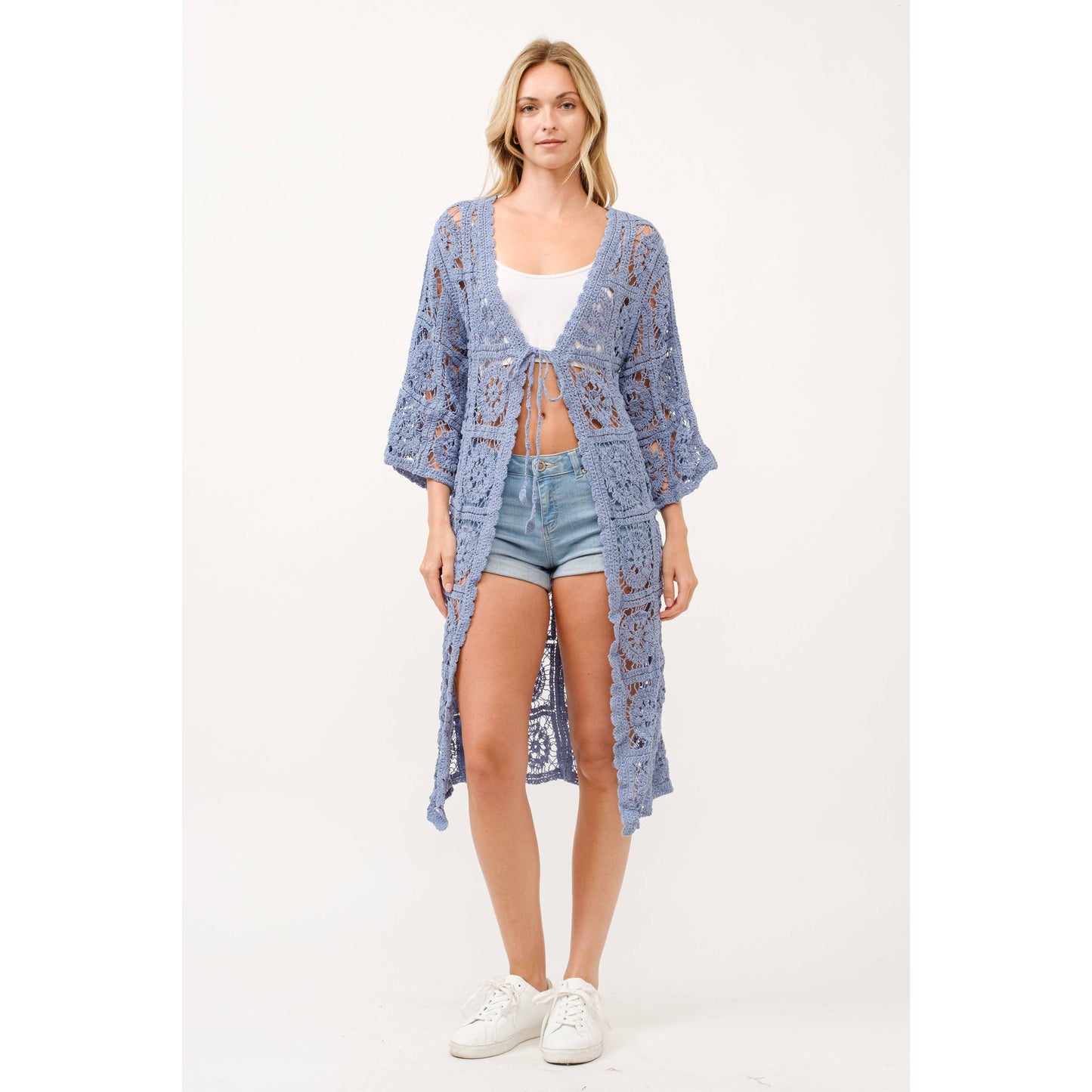 Step into effortless boho chic with our crochet kimono, gracefully draping and flattering silhouette. This kimono exudes artisanal charm and adds a touch of laid-back elegance to any outfit. Whether layered over a swimsuit for a beach-ready look or paired with jeans and a tank top for casual outings, this versatile piece is sure to become a wardrobe favorite.