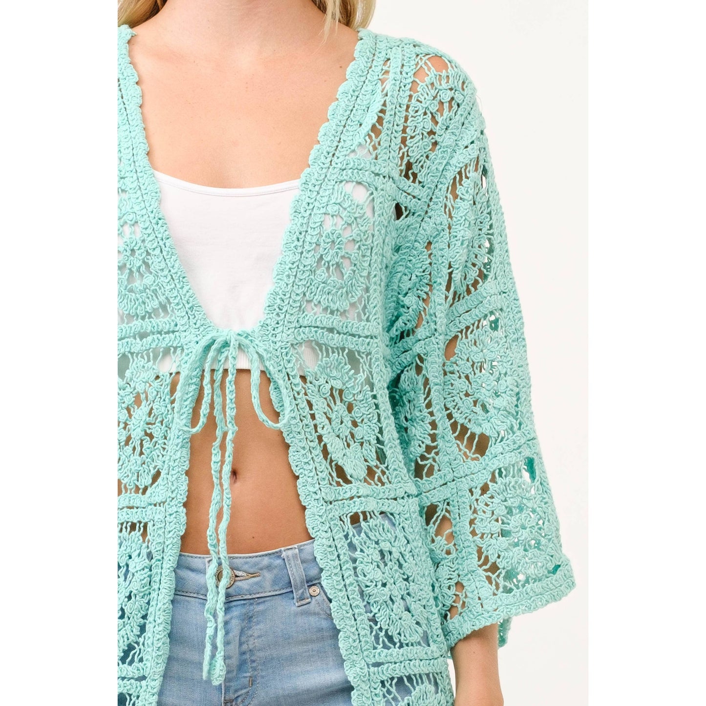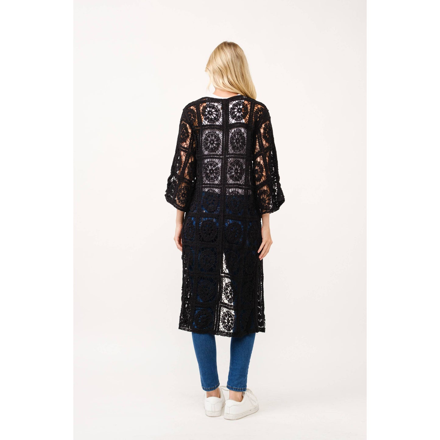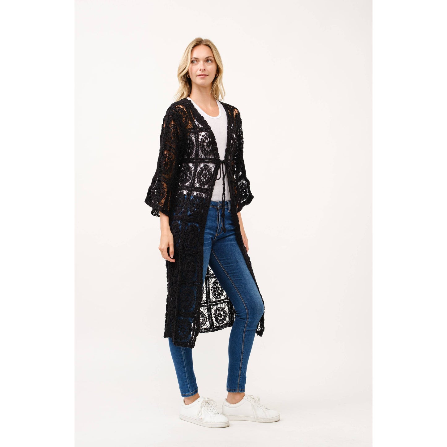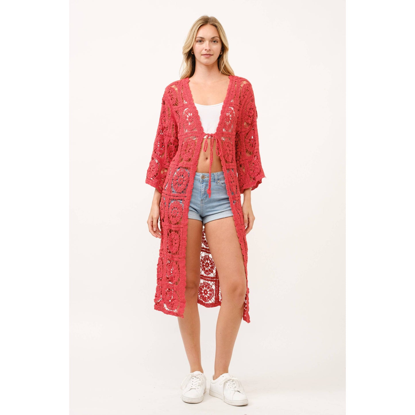 Step into effortless boho chic with our crochet kimono, gracefully draping and flattering silhouette. This kimono exudes artisanal charm and adds a touch of laid-back elegance to any outfit. Whether layered over a swimsuit for a beach-ready look or paired with jeans and a tank top for casual outings, this versatile piece is sure to become a wardrobe favorite.