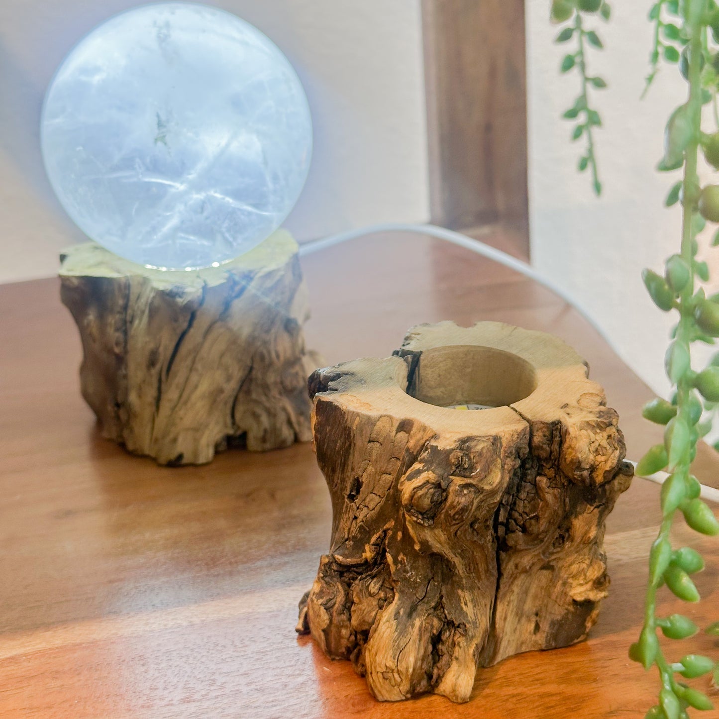 Enhance the presentation of your favorite spheres with our Rustic Trunk Wood Sphere Stand. Crafted from high-quality wood, this sturdy and stylish holder is designed to elegantly showcase your crystal spheres, marbles, gemstones, or decorative balls. Whether used for home décor, meditation altars, or display cases, this stand is a versatile addition to any collection.