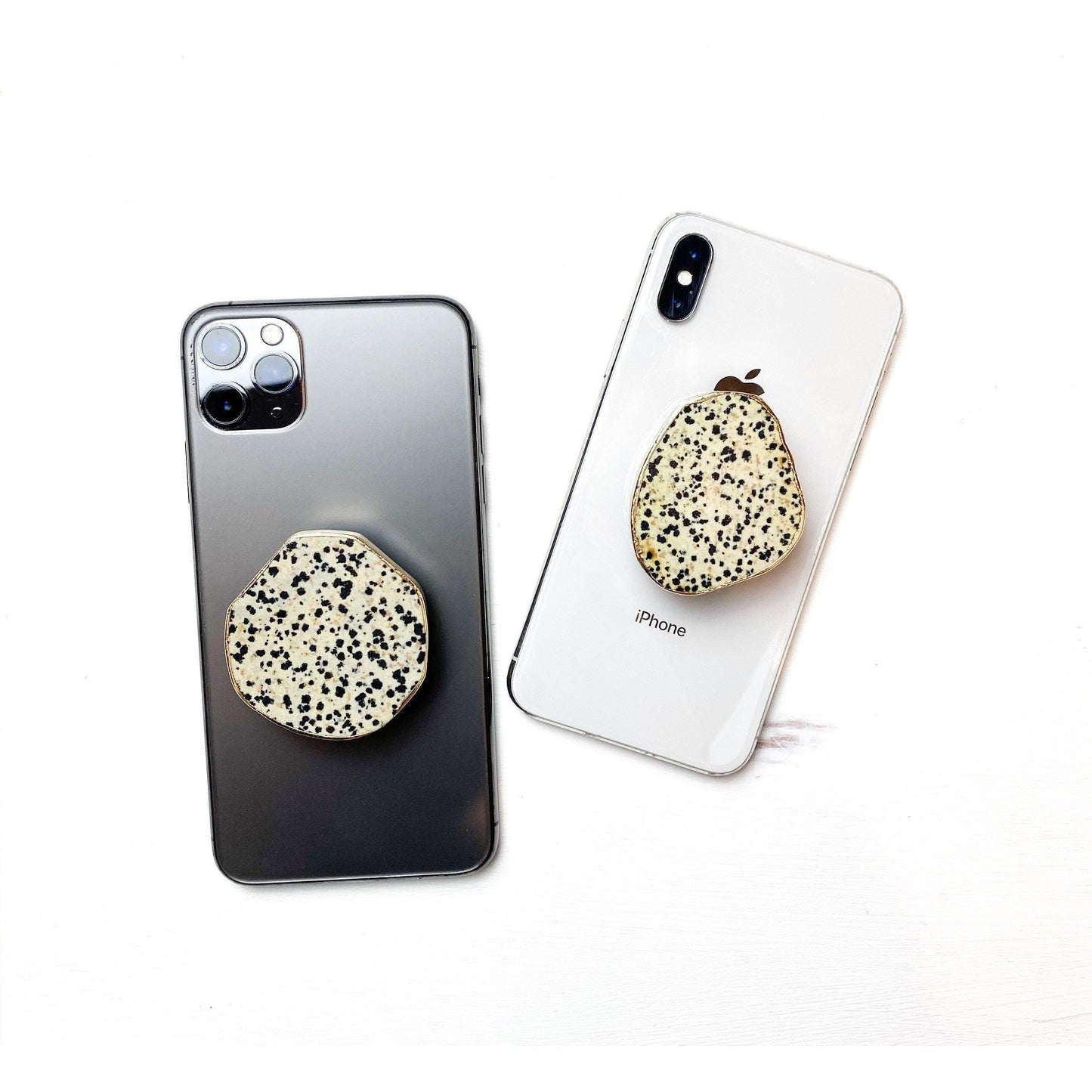 Dalmatian Jasper Gemstone | Crystal Phone Stand with Gold Rim (natural gemstone)