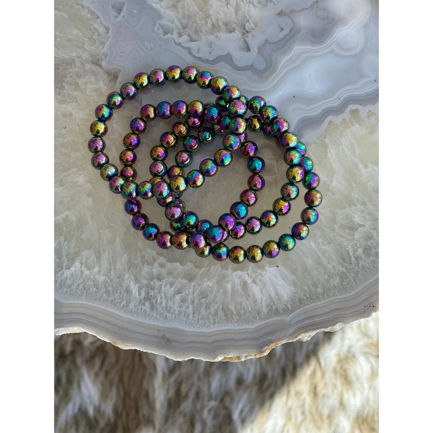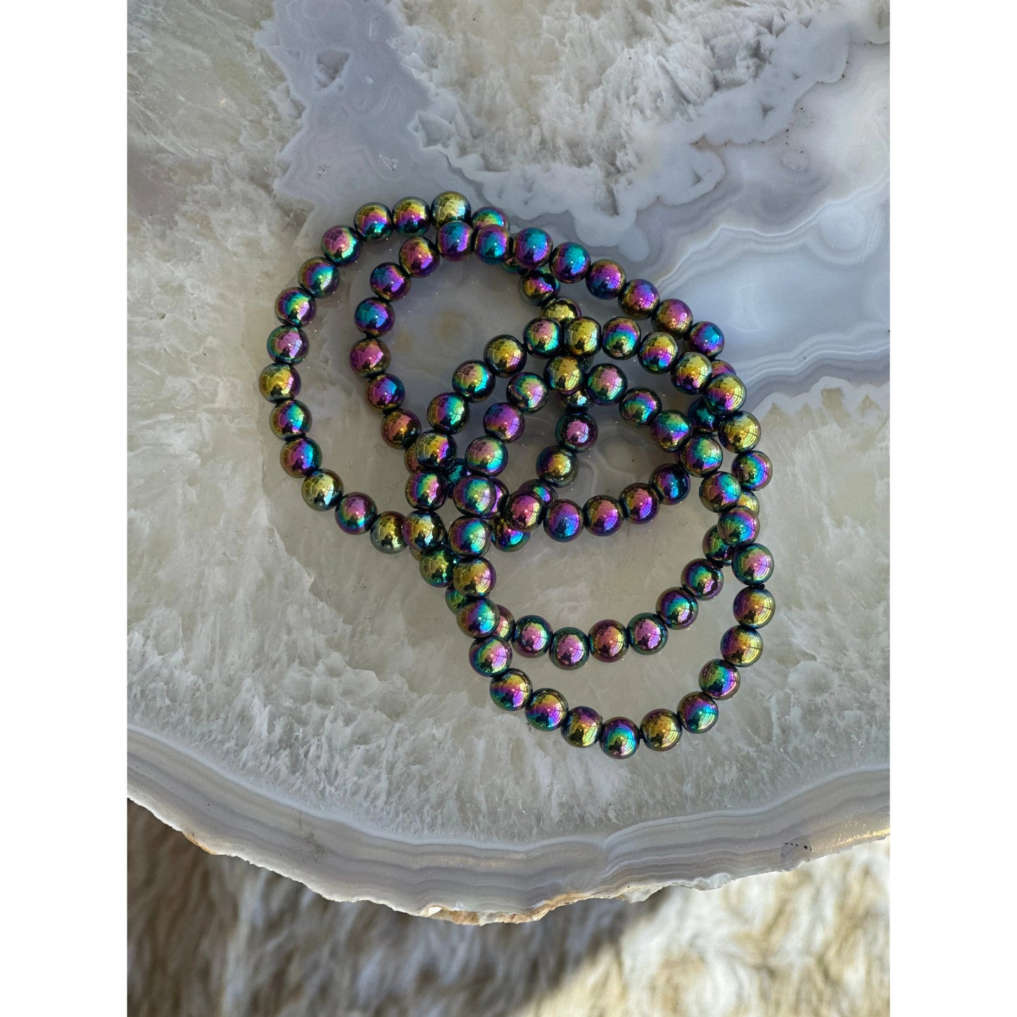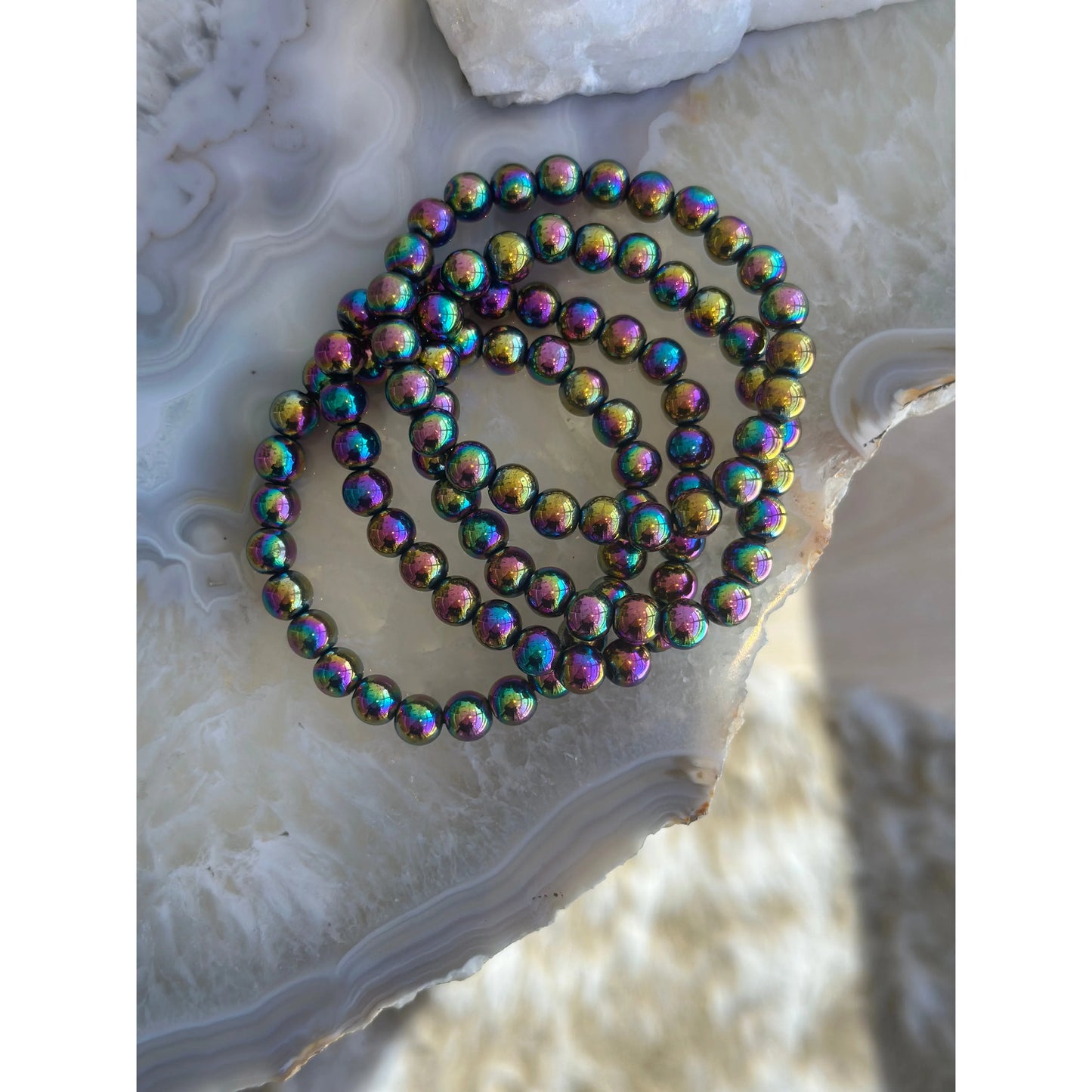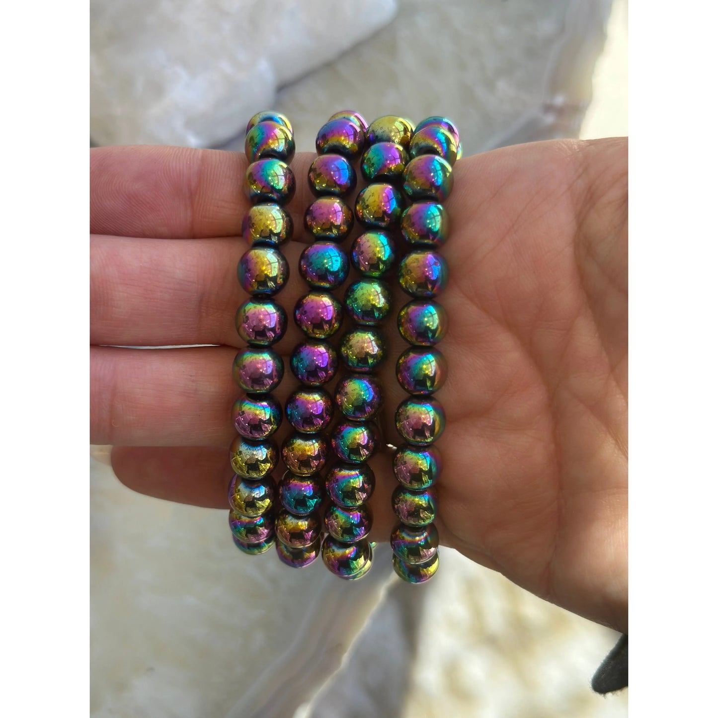 Looking to enhance your energy, focus, and inner stability? Our Polished Aura Hematite 8mm Bracelet is designed to bring protection, grounding, and clarity to your daily life. Hematite is known for its ability to absorb negative energy, while the aura coating adds a mesmerizing iridescent shine, amplifying its metaphysical properties.