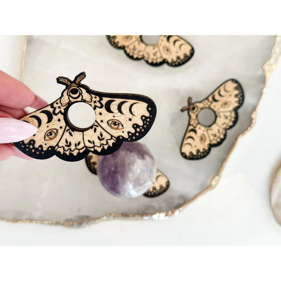 Wood Sphere Stand – Moth Edition | Crystal Ball & Gemstone Display Holder